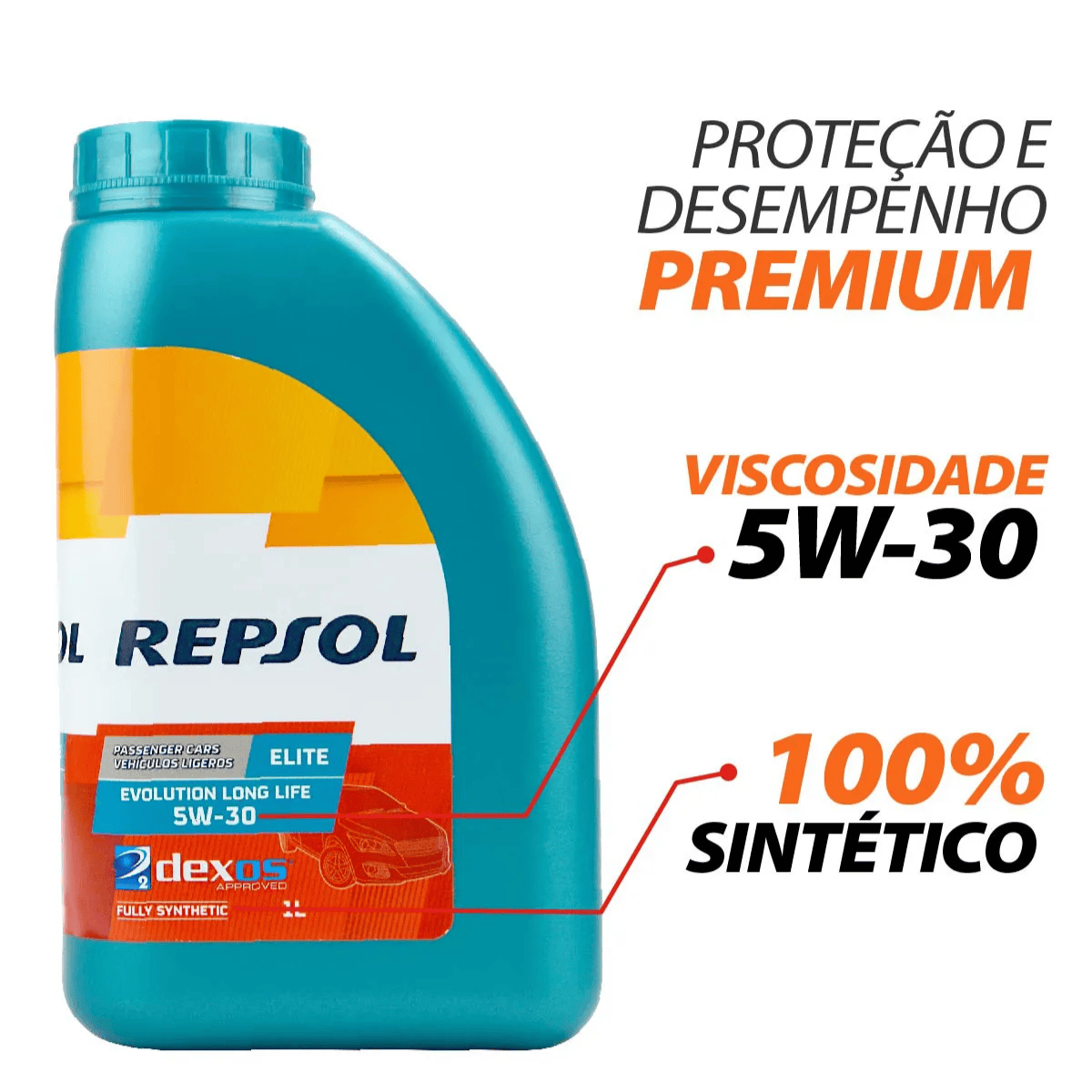 Oleo de Motor Sintético Elite Evolution Long Life 5W-30 1L - Repsol