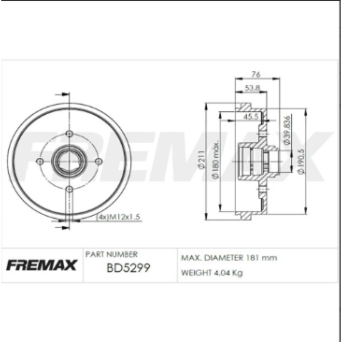 Par Tambor Freio Traseiro Gol G4 G5 G6 Fremax BD5299